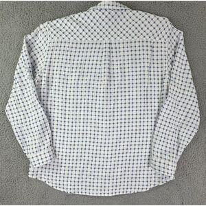 Carbon2Cobalt mens XL long sleeve button down shirt in white with blue and black cross stitch grid pattern. Made from 100 percent cotton with branded buttons and a soft breathable feel, suitable for casual or everyday wear.