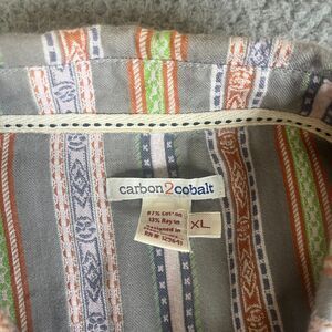 Carbon2Cobalt Shirt Mens XL Gray Green Button Short Sleeve Pocket Aztec Tribal