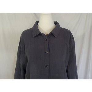 Carbon2Cobalt Womens Gray Textured Button Up Oversized Shirt Top Medium