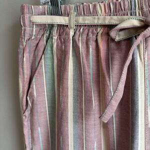 Made of the softest, featherweight cotton, these breezy pants celebrate summer with their sun-washed ikat stripes. Relaxed, comfortable details include a wide elastic waist, an internal self-draw cord, and an easy straight leg (made for rolling up for a beach stroll). Front slash pockets and single drop-in back pocket. Pull-on styling.
