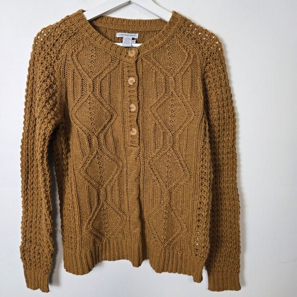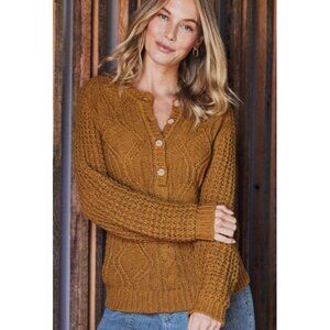 Carbon2Cobalt Women's Size XS Spiced Cable Knit Henley Sweater Dijon Brown