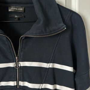 Carbon38 Breton Stripe French Terry 1/2 Zip in Navy. Good used condition with light wear and no flaws. Size Small.