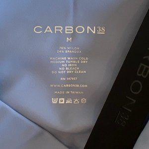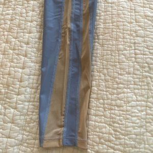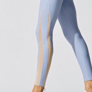 Carbon38: Mesh Blocked Leggings. High-rise leggings with nude mesh inserts on the sides. Size: Medium. Color: Pale Blue. Original Price: $128. New in original packaging.