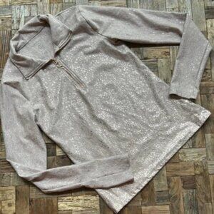 Carbon38 Quarter Zip Pullover Tan Beige Rose Gold Sparkles Zipper Size Small