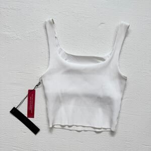 Carbon38 White Ribbed Crop Tank Top, Size XS