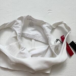 NWT Carbon38 ribbed crop tank in white featuring a built-in mesh shelf bra for light support. designed with a scoop neckline, wide straps, and a cropped silhouette that works perfectly for layering or wearing on its own. sleek and minimal style ideal for workouts, yoga, or casual athleisure outfits.