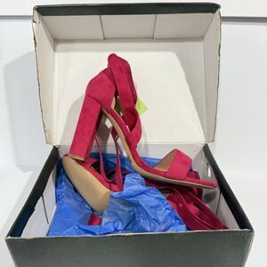Carcuume Women’s Purple Pink Suede Strappy Ankle Wrap High Heel Shoes Size 9