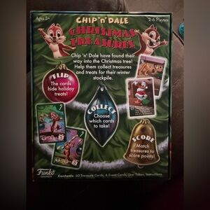 Chip n Dale Christmas Treasures card game. Game is opened but all pieces are there. Always willing to bundle and take reasonable offers!
