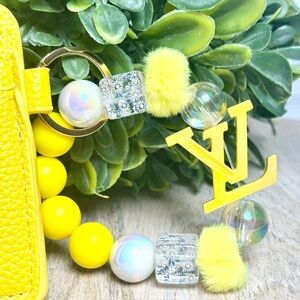 Card Holder Wristlet with Handmade Beaded Keychain in Yellow