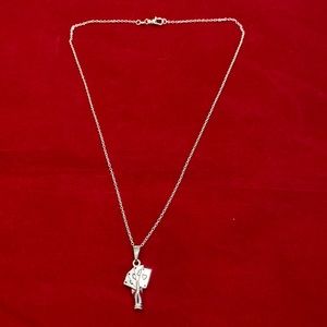 New charm is approx 1” x 1/2” in size is hangs from 18” silver plated hypoallergenic chain. Charm are antique silver tone zinc alloy (lead and nickel free)