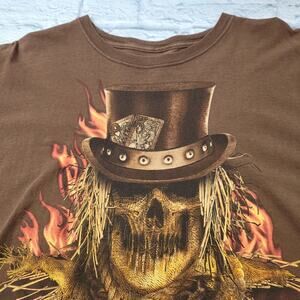Card Shark Skull Scarecrow Brown Halloween T-shirt size Medium