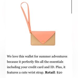 Wallet for summer adventures because it perfectly fits all the essentials including your credit card and ID. Plus, it features a cute wrist strap. Retail: $20