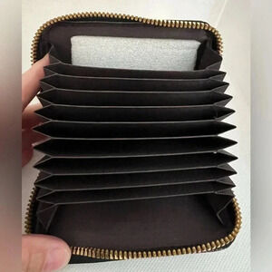 Classic LV look, brown & black check, full zip around close. The interior has 11 card slots, accordion style. Gold tone metal hardware, zipper snd pull tab. Brand new. NWOT.