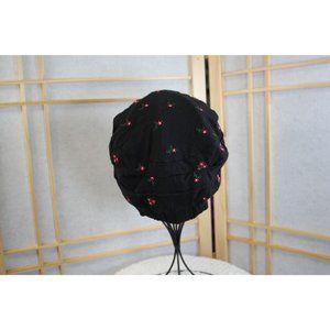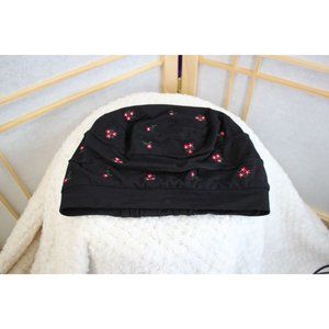 Cardani black with red flowers beanie. Great for cancer patients with hair loss