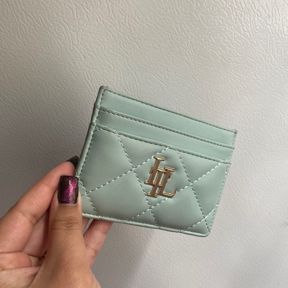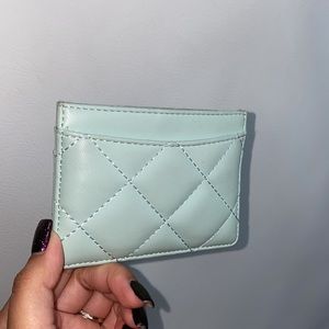 This cute Tiffany blue cardholder is in good condition and has 4 pockets to hold in cash and credit cards. Perfect for small bags
