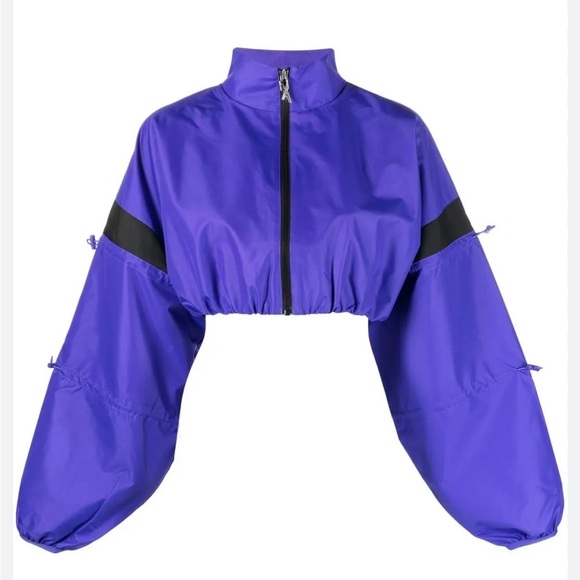 Elevate your style with this cropped jacket from Cardi B x Reebok collaboration. Size Medium in color Ultima Purple and Black.
