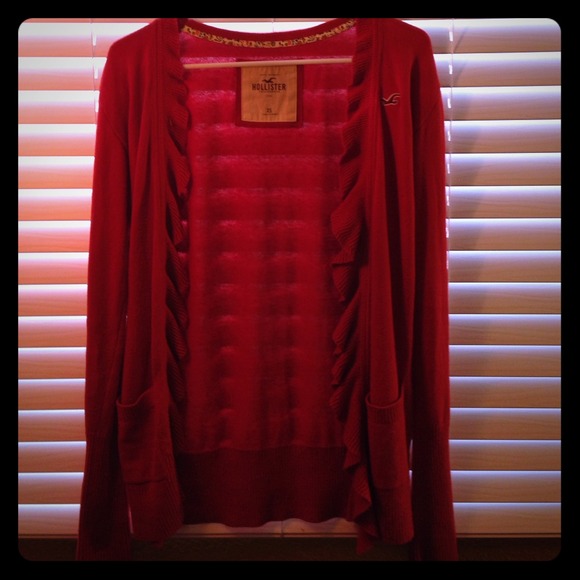 Hollister cardigan with ruffles perfect for leggings or dresses worn twice and perfect condition scarlet orange spring or fall perfection