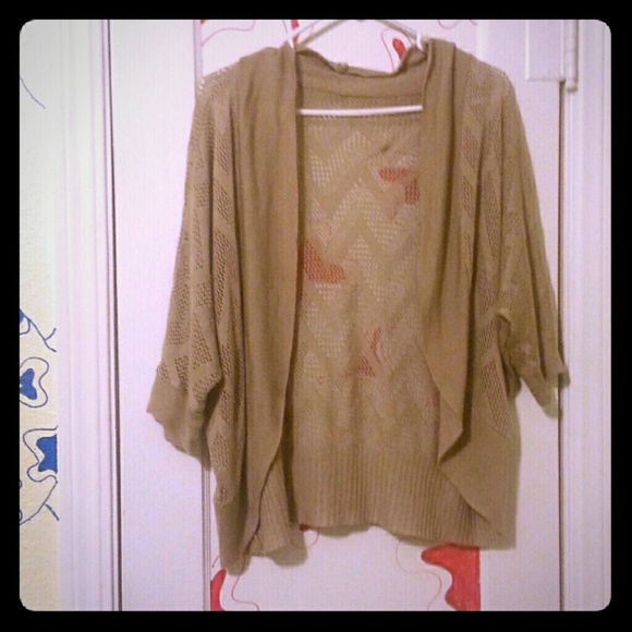 Im not sure if its a cardigan or not but thats what im calling it xD! I absolutely love this , it fits large or X large. Light brown and has chevron stitching! Has a slight tear on the bottom.