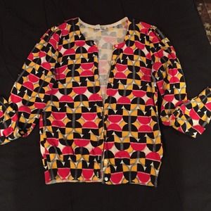 Multi colored red black yellow and white cotton cardigan.worn twice very clean Like new condition