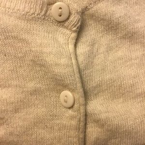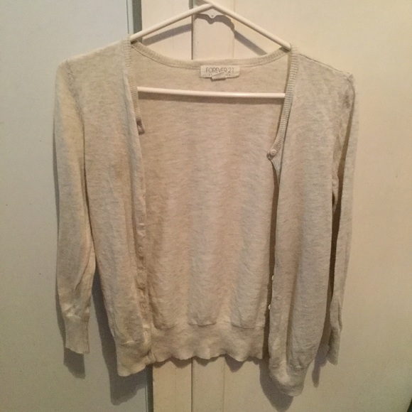 This cardigan is light weight and super cute! The color is a very faint gray almost off white. Size small but I would say it fits more like an x-small :) Not listed brand, just for views, this is Forever21