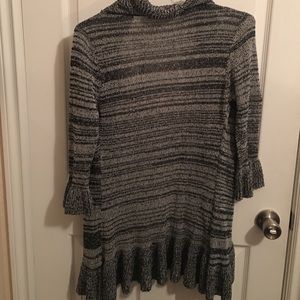 Long, black and white cardigan. Very cute for a business casual look
