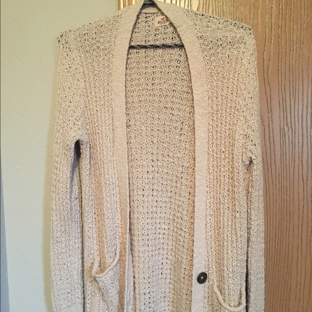 Lightweight cardigan from Hollister! Gotten a few wears out of it but washed in cold water and hung to dry! Still in great condition!