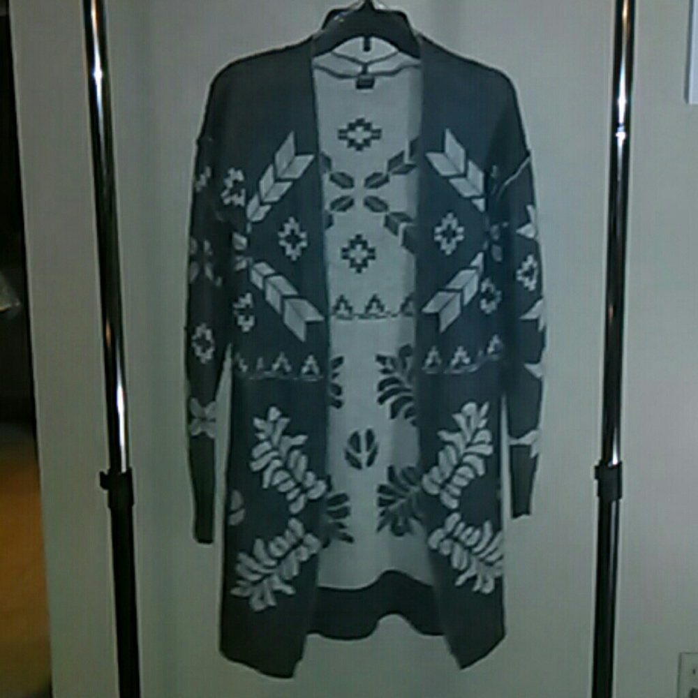 Light wold grey and creme colored soft cardigan Aztec print reversible worn once