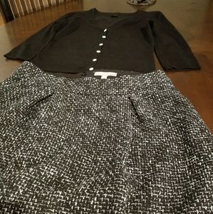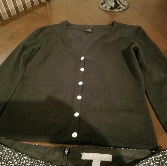 86% Black silk V cardigan with 6 white button. Mid length sleeves beautiful with anything