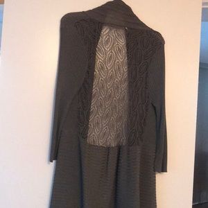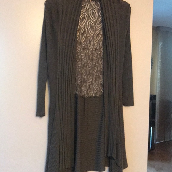 Long sleeve moss green cardigan mesh back and uneven different lengths in front