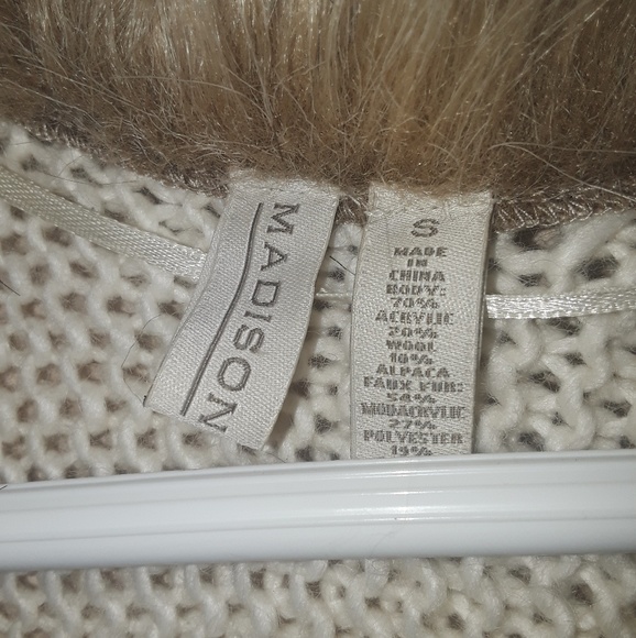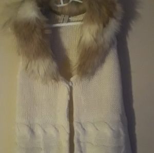 Cream White, Faux Fur, Knit it does button, Small