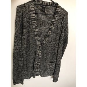 Roomy and comfy cardigan. Has big buttons and a pocket in the front. Great addition to an outfit.