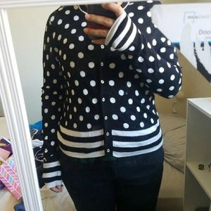 It is like new, although it doesnt have the tags, it was only used once. Polkadotted, lengthy sleeves, 100% rayon fabric.
