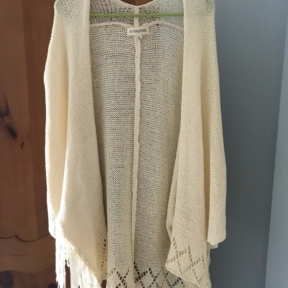 This off white/cream cardigan is the perfect staple in your outfit. You can choose to dress it up or down to match your style. It has a great detailing on the bottom with tassels. It is a M/L