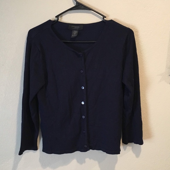 Navy blue express cardigan. Says size large but fits more like a small/medium