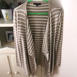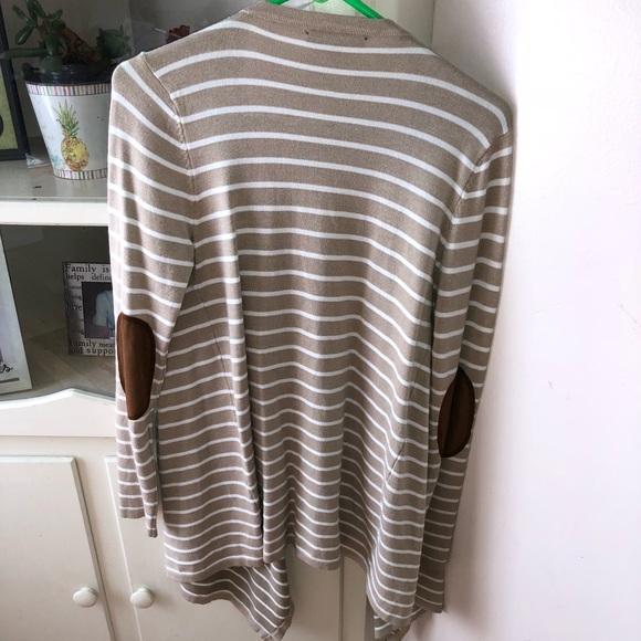 Long sleeve Tan and white striped cardigan with patches on elbow