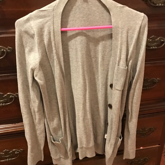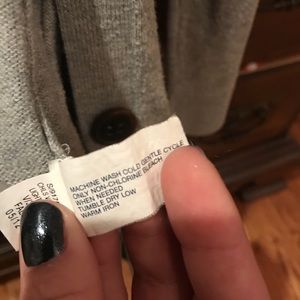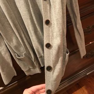 Grey button up cardigan with wood imitated buttons. Very soft and comfortable