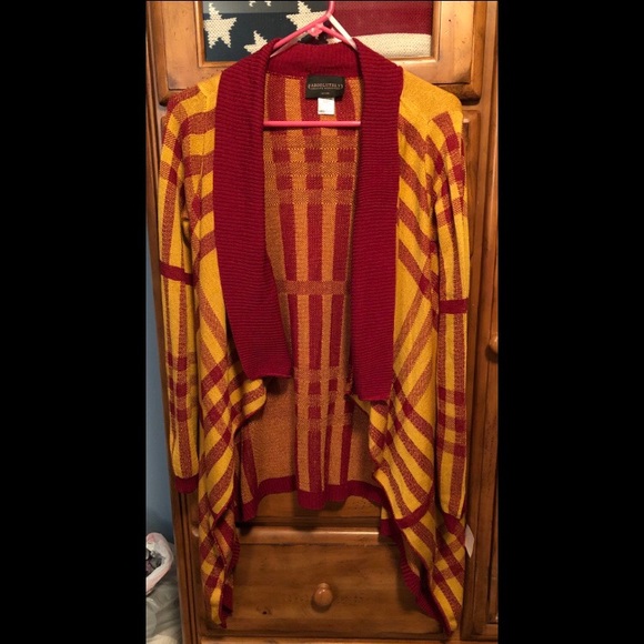 Red and gold cardigan. Women’s medium. BRAND NEW with the tag. Nothing wrong with it just never worn. Smoke free pet free home. Feel free to make an offer!