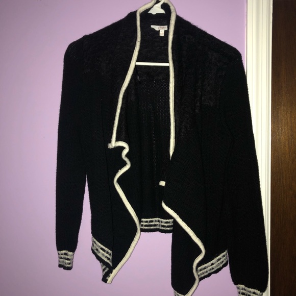 This cardigan was worn a few times. There are suppose to be furry fabric by the shoulders and the cuffs on the sleeves. I washed it and it seemed to be matted down I’m not to sure but it’s still a good cardigan.