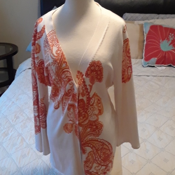 Coldwater Creek cardigan. Beautiful cream with orange Paisley design.
