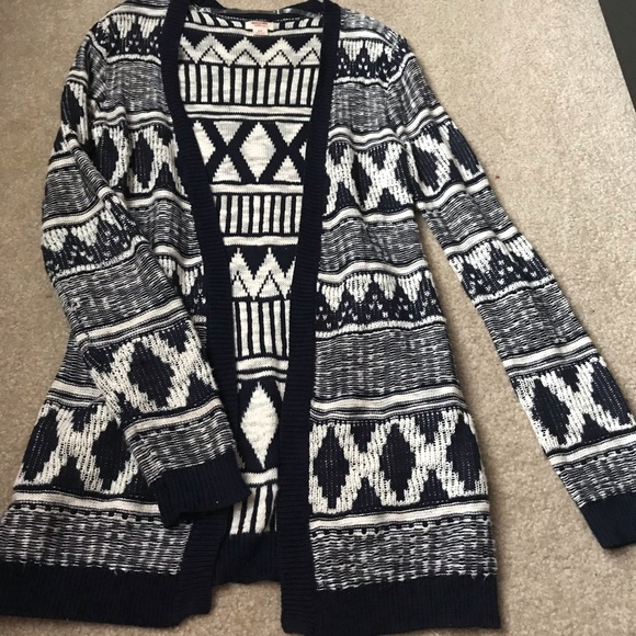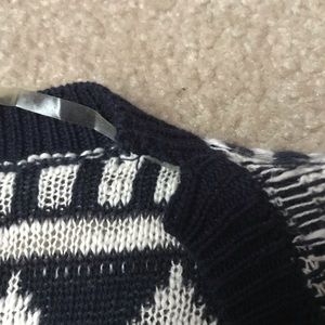 This is a cute dark blue patterned cardigan. Slight tear at the top but easily fixable. Look at last photo.
