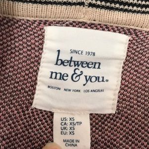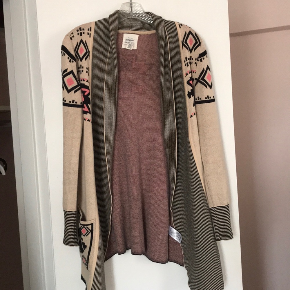 Beige brown cardigan with pink and black tribal designs