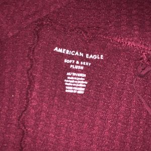 Maroon cardigan with a hood. Very flowy and soft material. Little longer. Basically a one size cardigan.
