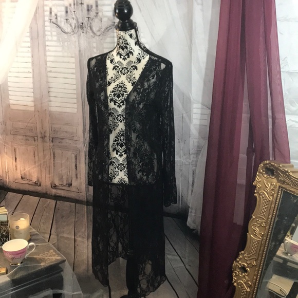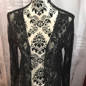 Black lace one size fits most. Stretch lace. 100 percent polyester.