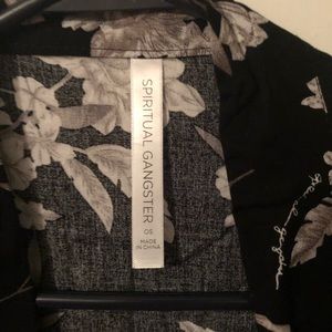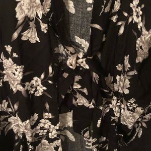 Black,white and grey floral cardigan with pockets. Can tie in front or back or not at all. Light weight good for summer and into fall. Super cute and comfortable. NWOT. One size will fit up to an Xlarge