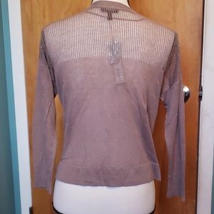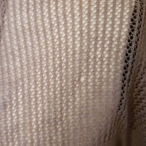 Taupe open front cardigan with mesh detail. Small defect in mesh as shown in pic but probably not really noticeable unless you are wearing white underneath.