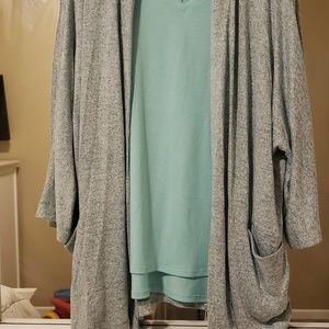 Teal tank top with matching cardigan. Cardigan is 3/4 sleeve and has pockets.