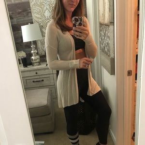 Beautiful cream express Cardigan. Worn a handful of times and loved pairing it with jeans and boots. It does have a small snag at the shoulder, which you can see from