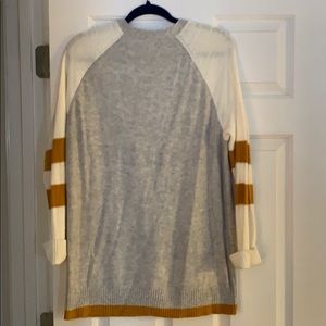 Mustard, Grey, and Ivory Cardigan with the number 24 patched. Very soft and has a waffle look to it. Size Large