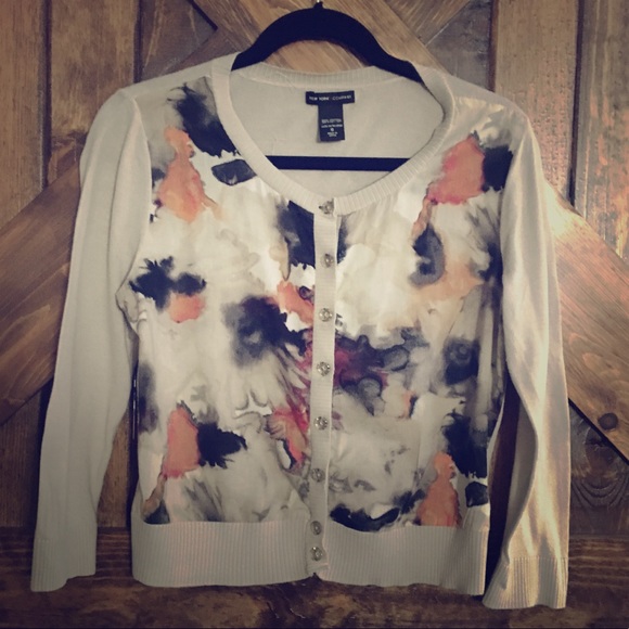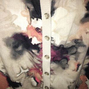 Multi colored cardigan. Jeweled buttons. 100% cotton.