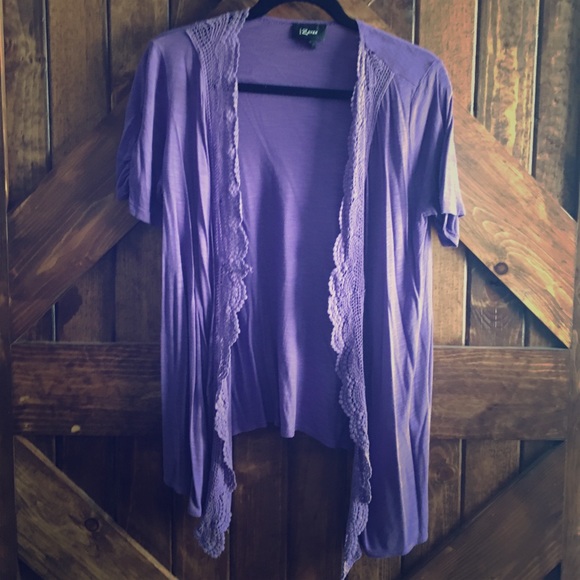Lavender short sleeve lace open cardigan 100% rayon
